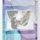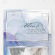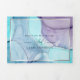 Salpico etéreo de manchas de tinta alcoólica em tons de aqua impressionante, violeta roxo e lilás pálido - cada seção destacada com uma sobreposição branca translúcida emoldurada em prata platina, no centro da frente está sua foto acentuada com uma moldura dupla dourada e por trás da sobreposição branca translúcida para um apelo esotérico um belo design abstrato moderno para um convite de casamento completo, incluindo uma escolha de refeição destacável pré-endereçada com rsvp para que seus convidados possam facilmente devolver por correio - um convite de casamento impressionante tudo-em-um -