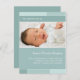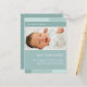 "Com a Joy" azul e anúncio de nascimento de fotos aqua. Personalize este modelo de cartão-postal moderno e na moda com a foto da sua menina e os detalhes para um anúncio de nascimento único.