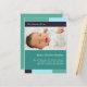 "Com a Joy" Teal & aqua, anúncio de nascimento de foto. Personalize este modelo de cartão-postal moderno e na moda com a foto da sua menina e os detalhes para um anúncio de nascimento único.
