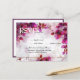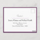 O cartão de casamento RSVP estilo cartão-postal, uma deliciosa adição ao "Encantamento Fuchsia: Watercolor Wedding Suite", revela uma frente pitoresca adornada com o pano de fundo cativante das floradas fuchsia e do trepador de mariquinhas. O design cuidadosamente trabalhado fornece espaços para os hóspedes inserirem seus nomes e responderem com aceitação ou declínio. Além disso, são apresentadas três opções de refeições, permitindo que os convidados especifiquem suas preferências culinárias. Ao virar para trás, um rico e real pano de fundo cria um contraste refinado e sofisticado. Este lado serve como cartão postal, oferecendo ao receptor do cartão um espaço de vazio para endereçamento. A simplicidade da design aumenta a praticidade enquanto mantém uma estética elegante. O cartão RSVP do estilo postal "Encantamento Fuchsia: Watercolor Wedding Suite" não só captura a essência da celebração, como também contribui para a beleza coesa de toda a suíte de papelaria do casamento.