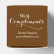 Dê uma degustação profissionalmente aos clientes com este simples castanho e branco com presentes de elogio ou caixa de presentes de tratamento. Ideal para ofertas corporativas para clientes ou funcionários. Também pode ser usado para promoções ou clientes novos leais ou potenciais preenchidos com suas amostras de comida. Uma simples caixa de presentes de café preto e branco, interligando ovais. Personalize com os detalhes de contato da sua empresa. Atualmente, lê com elogios pâtisserie, seguidas do número de telefone ou do seu site. Desenhada por Sarah Trett.