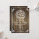 Coma a bebida & seja tipografia casada com redemoinhos das flores e das videiras em um fundo de madeira rústico da grão. Personalize com seu próprio texto. Ilustração original pelo pj_design. Verifique por favor minha loja para ver se há mais como esta. Excelente para rústico, celeiro, ocasional, exterior, piquenique, jantar de ensaio, casamentos ocidentais.
