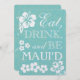 Os inviations deste casamento do destino de Havaí dizem que "coma, bebida e seja Maui'd" na parte dianteira. É uma rotação no popular "come, bebida e seja casado". Este design havaiano tem um fundo da cerceta com um watermark floral tropical. Acento tropical branco das flores do hibiscus e da praia em torno do fraseio. A parte traseira tem a abundância do espaço para seus detalhes do casamento. Se você precisa a ajuda com personalização ou se você quer um esquema de cores você não vê em minha loja, apenas mensagem mim com seu pedido.