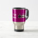 Esta caneca de viagem caracteriza 3 imagens, mostra em silhueta em preto e branco e arranjada em uma linha - uma placa de comensal com faca e forquilha, uma cama com o alguém adormecido nela, e um cheerleader que guardara poms e no meio de um salto. As imagens referem o tema de "comem, dormem e saltam".