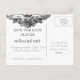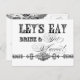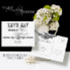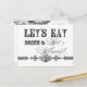 Fontes elegantes e divertidas anunciam a mensagem "Vamos comer, beber e casar!" em um delicioso cartão postal de anúncio de "save the date" caprichoso. Em uma paleta de cores preta e branca, limpa e nítida, é o melhor do vintage com um toque moderno.