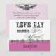 Fontes elegantes e divertidas anunciam a mensagem "Vamos comer, beber e casar!" em um delicioso Conjunto de Convite de Casamento caprichoso. Em uma paleta de cores limpa e nítida em tons de rosa mel, cinza, preto e branco, é o melhor do vintage com um toque moderno. A parte frontal tem o texto e seus nomes com a data do casamento. No verso, há dois ornamentos de impressora com um "e comercial" em fonte caligráfica elegante e o texto "Celebre conosco" em fontes únicas e divertidas, juntamente com as informações do convite para o casamento. Há um conjunto completo de produtos disponíveis com este design e podemos fazê-lo em qualquer combinação de cores que você desejar.