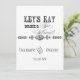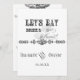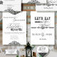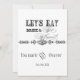 Fontes elegantes e divertidas anunciam a mensagem, "Vamos coma, beba e se case!" em um maravilhoso e caprichoso Concurso de Casamento. Em uma paleta de cores clara, nítida, preta e branca, é o melhor de vintage com um toque moderno. O lado da frente tem a mensagem e os seus nomes com a data do casamento. No verso estão os ornamentos de duas impressoras com uma letra elegante caligráfica à mão e o texto "Celebrar conosco" em fontes únicas e divertidas, juntamente com as suas informações de convite para casamento. Há um conjunto completo de produtos disponíveis com este design e podemos fazer isso em qualquer combinação de cores que você desejar.
