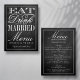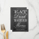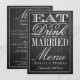 Coma, Beba E Esteja Casado Com Cartões De Menu De Casamento De Chalkboard.