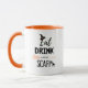 Coma, beba, e seja uma caneca assustadora de Halloween com chapéu de bruxa, vassoura e gato preto! Perfeito para amantes do Halloween!
