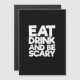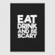 Design de Halloween “Coma, Beba e Seja Assustador” clássico retrô com charme nostálgico.