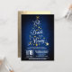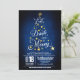 Design de árvore de Natal divertida com um tema bonito azul texturizado e dourado de cor festiva para estes convites de festas de Natal festivos