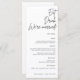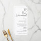 Este cardápio de casamento apresenta uma bela fonte de roteiro mostrando as palavras "coma, beba, somos casados" para uma maneira elegante de mostrar seu cardápio de casamento aos seus convidados.