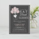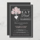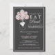Um lindo jarro de hidrangeas cor-de-rosa e brancas, acentuado com um coração e as iniciais dos casais - convida seus convidados para um Chá de casamento de Casais com "Coma, beba e se case!" Com elementos brancos e tipografia, sobre fundo de cinza de carvão, este design é simplesmente subestimado e casualmente elegante.