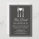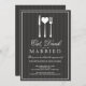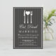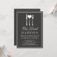 Adorável prata branca, em forma de coração - convida seus convidados para uma celebração de noivado com "Coma, beba e seja casado!" Com elementos brancos, tipografia castanha de chocolate escuro, sobre um fundo de cinza de smoking ligeiramente listrado, simplesmente subestimado e elegante.