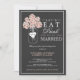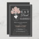 Bonito jarro de hipnagas em tons de pêssego cremosos de damasco e acentuado com um coração e as iniciais dos casais - convida seus convidados para um Chá de casamento de Casais com "Coma, Beba e Se Case!" Com elementos brancos e cor de pêssego e tipografia, em uma cinza escura, esta design é simplesmente subestimada e casualmente elegante.