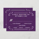 Coma, Beba, e seja casado — Cartões de resposta RSVP personalizados de convite para casamento no país, estilo Vintage — Rolamentos suaves, encaracolados e tipografia de corte velho em branco radiante sobre fundo violeta profundo de beringela roxa. Adicione os nomes da noiva e noiva e as datas de casamento e resposta neste modelo fácil de usar. O estilo retrô, elegante, mas divertido e caprichoso, pode ser facilmente modificado para seus temas de casamento formais ou semissformais. O estilo casual moderno é perfeito para casamentos rústicos modernos com um toque divertido de encanto sofisticado para casais tradicionais. Entre em contato conosco para obter ajuda com a personalização se precisar de mais espaço para seus detalhes de casamento. Outros tamanhos e estilos disponíveis, juntamente com convites correspondentes, selos postais, acessórios de coordenação e favores de chá.