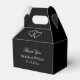 Coma bebida e seja casado com as caixas de favor de casamento preto. Bonita ideia de presente de festa de casamento para os convidados. Caixas em forma de esboços ou doces caseiros. Design de modelo de tendências com tipografia de na moda e dois corações duplos de encravamento. Obrigado personalizado que você envia uma mensagem com nomes ou monogramas de noiva e noiva mais data de casamento. Na moda e acessórios elegantes para dizer obrigados por vir. Divertido por casamentos alegres e ricos. Excelente como presente para chás de panela, damas de honra, noivado ou aniversário. Altere a quantidade para obter o preço em massa barato. Design preto e branco do conjunto de coleção de classe. Fundo de cor personalizável.