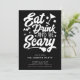 Este na moda apresenta um design de tipografia preto-e-branco com as palavras "Coma Bebida e seja Assustador. É a maneira perfeita de adicionar um toque de diversão e sofisticação do Dia das Bruxas à sua festa e deixar seus convidados saberem que eles estão dentro por um tempo assustadoramente bom. É um sucesso para todos que o recebem.