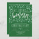Coma Bebida e Seja Feliz Convite de festas de Natal apresenta letra escrita manuscrita e elementos florais brancos em um fundo verde de caçador. Perfeito para as suas necessidades de Natal e Férias! Design Copyright Prim. + Impressões Bonito