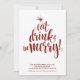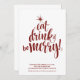 Este Convite de festas de Natal Coma Bebida e Seja Feliz, tem certeza de que fará com que seus amigos e familiares estejam clamando para comparecer à sua festa. Adicione seus próprios detalhes e faça o download instantâneo ou tenha o Zazzle impressão. Este convite foi criado profissionalmente pelo designer gráfico Eden Denevan.