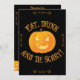 Convites de festas personalizados de fantasia de Dia das Bruxas preto e laranja (cinco por sete polegadas em uma placa de convite vertical simples) com texto alterável no verso da placa, onde você pode adicionar seu nome e endereço, dia e hora da festa, email ou número de telefone... Se você precisar de qualquer outro texto, que será impresso como gráfico, por favor, não hesite em entrar em contato comigo, o link está abaixo deste texto - Pergunte a este designer.