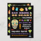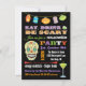 Coma super divertido, Beba e seja convidada para festas de Dia das Bruxas. Apresenta jack-o-lanternas penduradas, tipografia divertida, crânio de açúcar e um martini de globo ocular assustador, tudo num fundo preto. Excelente para uma festa adulta de halloween! Ilustração desenhada à mão por McBooboos.