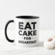 Coma o bolo para a caneca do pequeno almoço que caracteriza um design moderno, fresco.