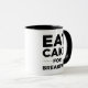 Coma o bolo para a caneca do pequeno almoço