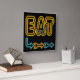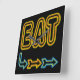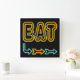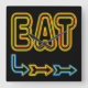 A arte retrô do EAT baseada num cartaz de restaurante neon vintage. As letras são amarelas e vermelhas, as setas são azuis, vermelhas e amarelas. Arte de publicidade divertida para pessoas que cozinham ou comem. Clique em Personalizar para adicionar seu nome ou mensagem.