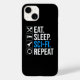 Coma. Durma. Sci-Fi. Repita. Ideia engraçada de amante de ficção científica para um homem, mulher, adolescente ou criança que ama ficção científica, espaço sideral, foguetes e exploração do universo, e é um geek ou nerd científico. Você ama livros de ficção científica, shows de tv de ficção científica ou filmes de ficção científica? Se você é um fã de ficção científica, e tem senso de humor, então esta design é perfeita para você! Excelente para vestir a uma convenção de ficção científica.