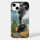 Locomotiva número 19 imagem a cores de um comboio a vapor que se aproxima nas vias férreas que torcem fumaça das cinzas da sua pilha a pista é flanqueada por árvores de cada lado