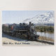 Comboio antiquado que atravessava o White Pass até Skagway, na Colúmbia Britânica com uma montanha coberta de neve ao fundo.