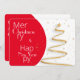 A saudação da época de Natal está perto. Hora de se reunir durante este feliz feriado, envie desejos amorosos de Natal para o seu amado. Compartilhe seu momento alegre com amigos e família com cartão de saudações de estação. Que seu dia seja feliz e brilhante nesta ocasião. Sobre o Design:- Cartão frontal: fundo branco, texto tipográfico desenhado em cor vermelha e trabalho de arte de árvore de Natal é na moda-ouro rodeado de estrelas e pontos ouros. Placa inversa: fundo e design de texto são combinados de cor vermelha e branca. Os espaços reservados de texto são fornecidos para mensagens e saudações editáveis.