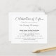 Um valor para o alternativo do ORÇAMENTO em tamanho menor de 4,5 x 5,6" de semirbrilho de 110 lbs, que é de espessura semelhante a um cartão postal (no entanto, não é adequado para uso como cartão postal). POR FAVOR, OBSERVE QUE HÁ UM convite por folha. Orçamento Da Celebração Do Convite À Almofada Branca. Um script de estilo de caligrafia de na moda para Celebração da Vida e na Memória Adorável e o resto do texto que você pode personalizar facilmente. Em preto e branco clássico ou pode ser alterado para qualquer cor de sua escolha por meio da opção personalizar mais.