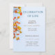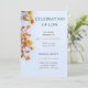 Aqui está um convite elegante e simples para um serviço memorial que está a ser realizado numa capela. No topo do convite está a informação da pessoa importante que comemoram. No final do convite está o momento e o local onde o memorial será realizado. O quadro é o de um magnífico céu azul com uma árvore que tem folhas coloridas quentes. Você pode personalizar as informações em ambos os lados deste cartão de acordo com as suas necessidades.