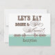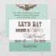 Fontes elegantes e divertidas anunciam a mensagem "Vamos comer, beber e nos casar!" em um delicioso Conjunto de Convite de Casamento caprichoso. Em uma paleta de cores limpa e nítida, azul aqua, marrom chocolate e branco, é o melhor do vintage com um toque moderno. A parte frontal tem o texto e seus nomes com a data do casamento. No verso, há dois ornamentos de impressora com um "e" comercial em fonte caligráfica elegante e o texto "Celebre conosco" em fontes únicas e divertidas, juntamente com as informações do convite para o seu casamento. Há uma suíte completa de produtos disponíveis com este design e podemos fazê-lo em qualquer combinação de cores que você desejar.
