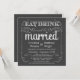 Convites de Casamento em Lousa Elegante -- Esboços sinuosos e enrolados e moldura rústica sofisticada em lousa cinza-ardósia. Adicione seus nomes e informações do casamento neste modelo fácil de usar. Escrita à giz em estilo vintage e tipografia de roteiro caprichosa - altere os estilos de letra para refletir o tema de casamento retrô formal ou semi-formal. O estilo de convite de lousa quadrada é perfeito para casamentos modernos e atuais com um toque divertido de charme sofisticado para a noiva e o noivo tradicionais. NOTA: O design deste produto está configurado apenas para cartões quadrados, que exigem postagem extra. Outros tamanhos e versões totalmente personalizáveis estão disponíveis na loja. Por favor, entre em contato conosco para obter ajuda com a personalização se precisar de espaço adicional para os detalhes do seu casamento.