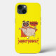 Pug sorridente no estilo cômico super-herói do manto vermelho