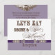 Fontes elegantes e divertidas anunciam a mensagem "Vamos comer, beber e casar!" em um delicioso Conjunto de Convite de Casamento caprichoso. Em uma paleta de cores limpa e nítida, lavanda, roxo ameixa, marrom chocolate e branco, é o melhor do vintage com um toque moderno. A parte frontal tem o texto e seus nomes com a data do casamento. No verso, há dois ornamentos de impressora com e comercial em fonte caligráfica elegante e o texto "Celebre conosco" em fontes únicas e divertidas, juntamente com as informações do convite de recepção de casamento. Há um conjunto completo de produtos disponíveis com este design e podemos fazê-lo em qualquer combinação de cores que você desejar.