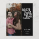 Orçamento Estilo engraçado e casual "Salve a data" com a citação "Booze, Comida e Más Danças" no estilo moderno de design de tipografia. Adicione sua própria foto para personalizar este modelo Salvar a Data.