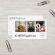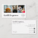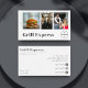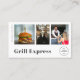 Este cartão de visita moderno personalizado para caminhões comidas, restaurantes ou serviços de entrega apresenta três modelos para adicionar suas próprias fotos favoritas, bem como seu logotipo. Todos os detalhes, como eventos, nome e mídia social ou informações de contato, podem ser personalizados individualmente. Se você não precisa de uma informação, apenas exclua a linha.