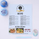 Comida do menu de restaurante criativo O folheto apresenta fundo azul claro, modelo de logotipo, modelo de imagem de comida, formato de lista de menus e outro modelo de texto.Um design de menu de comida perfeito para um pequeno restaurante ou café .Clique no botão personalizar para personalizá-lo com seu texto e logotipo.Visite gentilmente minha loja " loveyouart" para outros designs ou similares.