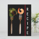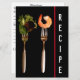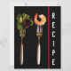 Compartilhe as suas receitas com os seus amigos e família com este moderno cartão de receitas estilizado. Esta placa apresenta uma fotografia original de comida escorregadia em garfos. A parte de trás é uma modelo que você pode usar ou carregar. Este cartão de receita é totalmente personalizável. A design moderna apelará a homens e mulheres.