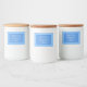 Esta etiqueta do recipiente de comida é mostrada em faixas azuis com cores azuis e brancas de destaque. Texto mostrado como "Flour sem objetivo". Personalize este rótulo para qualquer cor e personalize o texto para o que você deseja, ou comprar, conforme mostrado. Canister não incluído.