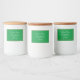 Esta etiqueta do contêiner de comida é mostrada em verde com cor de ênfase e cor branca. Texto em um roteiro divertido em branco. Texto mostrado como "Flour sem objetivo". Personalize este rótulo para qualquer cor e personalize o texto para o que você deseja, ou comprar, conforme mostrado. Canister não incluído.