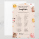 Este adorável cartão de chá de fraldas apresenta um tema fazenda charmoso com ilustrações bonitinhas de uma vaca, coelho, pintinho, cavalo e porco, cercado por flores alegres e um sol sorridente. As cores pastel suaves e a design branca criam uma atmosfera quente e convidativa. Visite o nosso compro para ver toda a nossa coleção de animais de Fazenda castanha-branca.