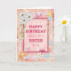 Diga o feliz aniversario com um cartão delicioso dos artesanatos do sucata-registo. Com lotes das flores, borboletas, e mesmo uma lagarta amigável, este cartão é certo deleitar-se. Copyright Norma Cornes.