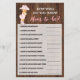 Cowgirl rosa, como conhece o Chá de fraldas da mamãe. Para alterações adicionais (cor da fonte, estilo da fonte, remover ou mover elementos), clique em personalizar, role para baixo e clique no link "Editar usando a ferramenta Design". ** O fundo da madeira é incorporado ao design para ser impresso em papel branco. ** - Verifique na coleção todos os designs correspondentes - HOW TO PLAY: Os convidados respondem às perguntas sobre a mãe para ser, depois de preencher todas as suas respostas, a futura mãe responderá todas as perguntas e convidados irão marcar as caixas certas que eles pensam corretamente, e escrever o total de respostas corretas no final. A pessoa com as respostas mais corretas ganha.
