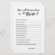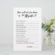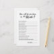 Um moderno e minimalista como você conhece bem o jogo de noiva em preto e branco. Teste o conhecimento dos convidados do chá de panela sobre a noiva, fazendo-os responder às perguntas neste cartão. Você pode personalizar as perguntas para se adequar à noiva! Este jogo "Como Você Conhece A Noiva" é uma atividade divertida para uma chá de panela, festa de noivado, festa de solteira ou recepção de casamento e uma maneira excelente de quebrar o gelo entre os convidados.