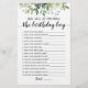 Adquira este jogo verde editável e desfrute da Trivia Aniversário de alta qualidade Como você conhece bem o cartão de aniversário do seu evento! Este é um modelo de jogo, você pode mudar as perguntas como quiser! Aquarela deixa design.